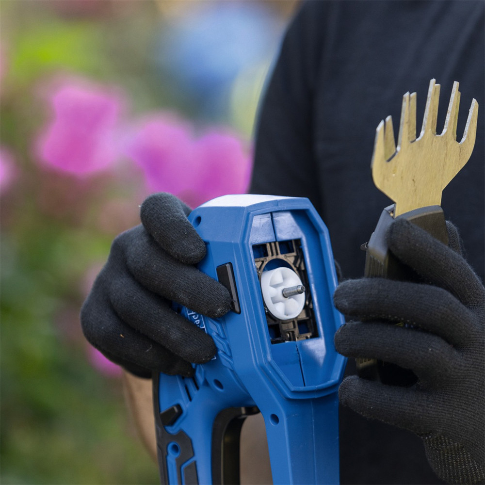 Az ollóban, az intelligens rendszernek köszönhetően, egyszerűen, szerszám nélkül, kicserélhetők a vágófejek. Ez lehetővé teszi a gyors váltást a fű- illetve sövényvágás között. A fűvágó fej szélessége 90 mm, ami garantálja a pázsitszegélyek pontos nyírását. A sövényvágó 200 mm-es vágófejének pengéi pedig a sövény könnyű és pontos gondozást biztosítják.