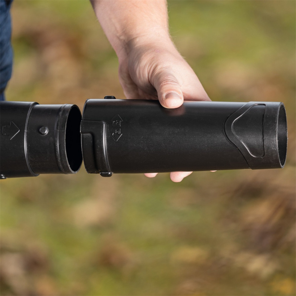 A modern axiál ventilátort nagy légáramlás jellemzi, a kompakt méretek megtartása mellett. A praktikus kivehető fúvócső könnyen, szerszámok nélkül rögzíthető gyorscsatlakozóval, megkönnyítve így a tárolást és a szállítást. Az ergonomikus kialakítás, a puhított fogómarkolat és a fúvó alacsony súlya kényelmes és könnyű kezelést biztosít hosszabb munkavégzés során is.