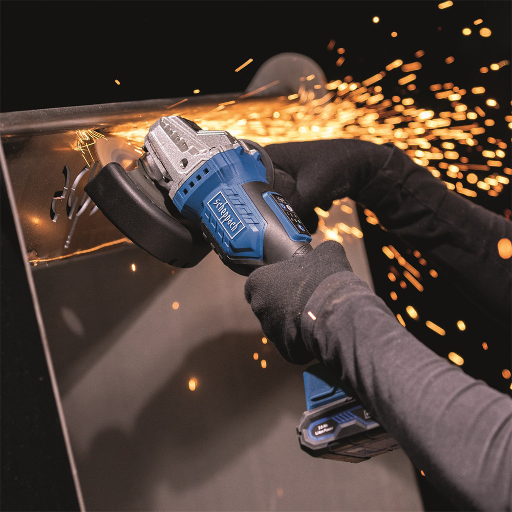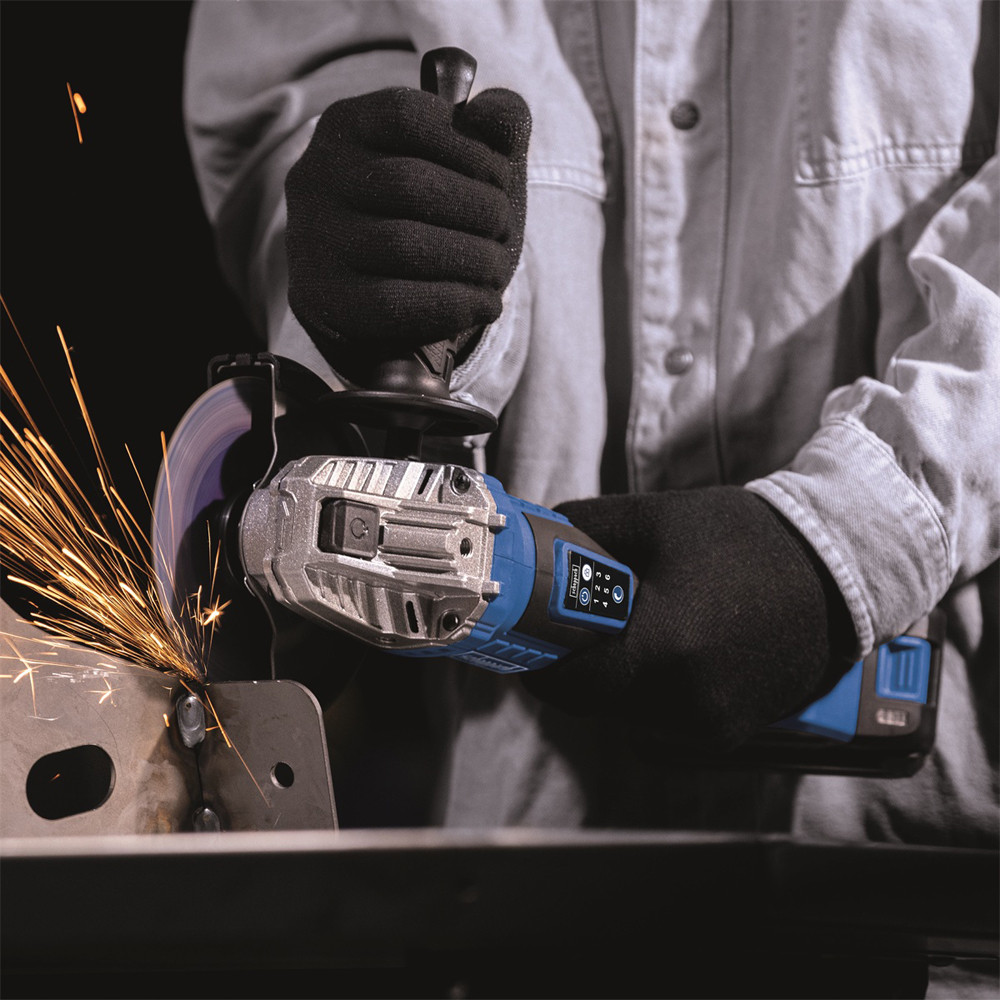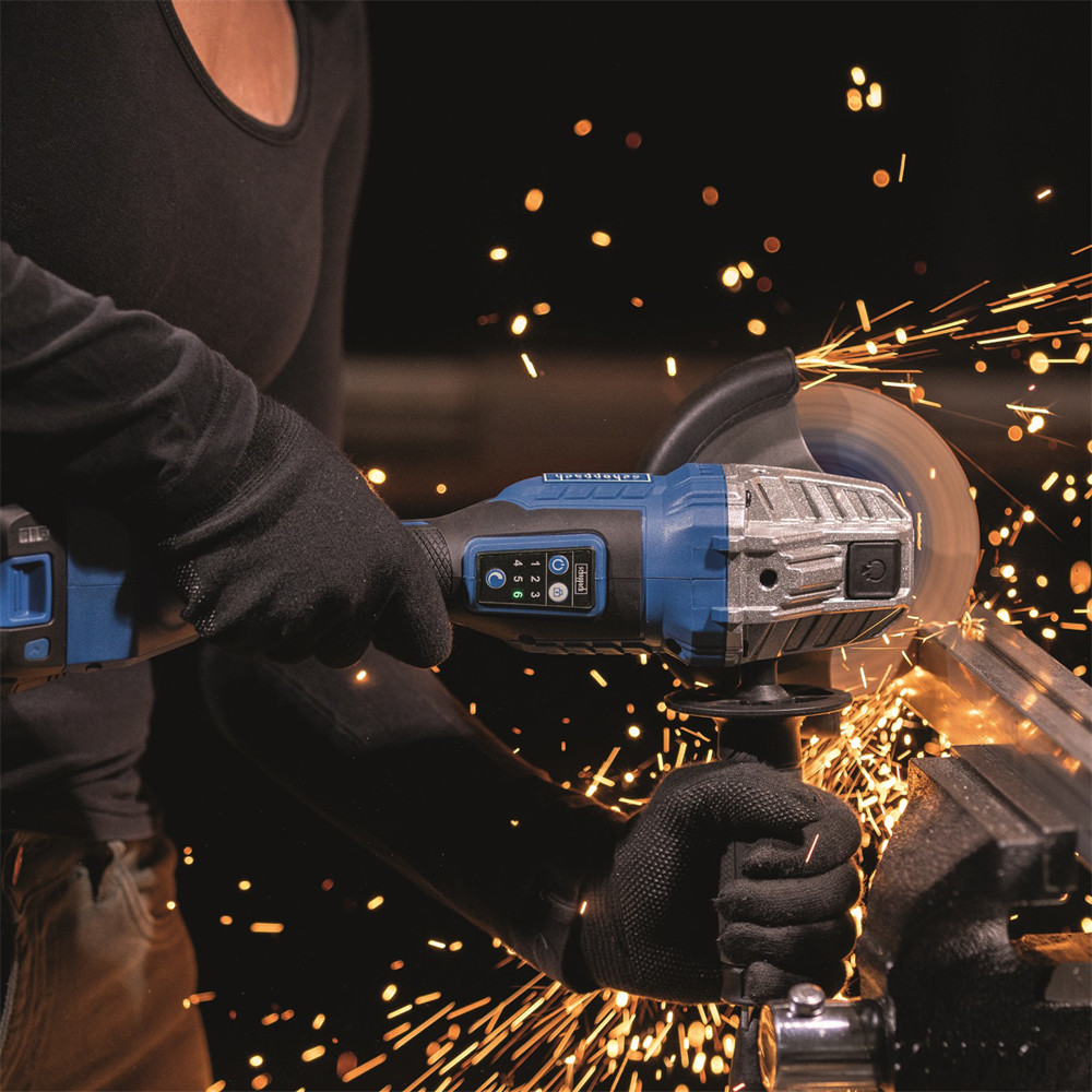 A csiszoló lehetővé teszi a fordulatszám hat fokozatban történő beállítását gombok segítségével 3000- 10 000 ford./perc tartományban, ami garantálja az adott anyaghoz és alkalmazáshoz való pontos alkalmazkodást. Az oldalfogantyú három pozícióba állítható, és beépített rögzítőkulcstartóval van felszerelve, ami növeli a kényelmet és a meggyorsítja a tárcsacserét. Az egyszerű tárcsacserét a praktikus tengelyzár biztosítja. A modell szabványos M14-es rögzítéssel rendelkezik, és 125 mm átmérőjű tárcsákkal használható. A csomag tartalmaz egy 125 mm-es vágótárcsát, rögzítőkulcsot és az oldalfogantyút.