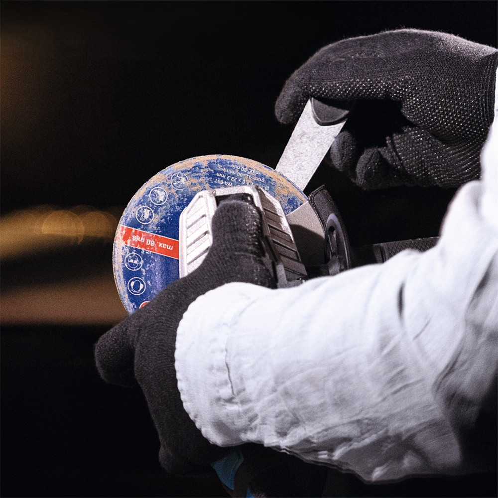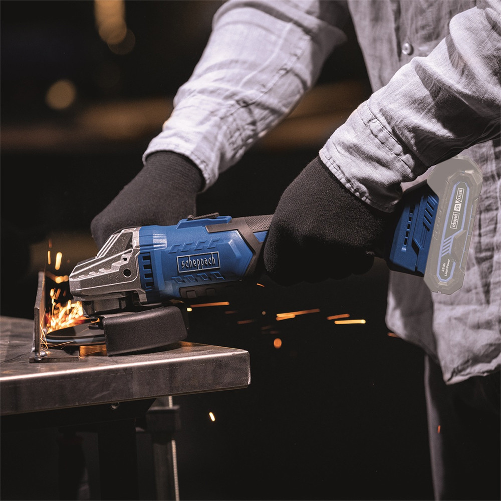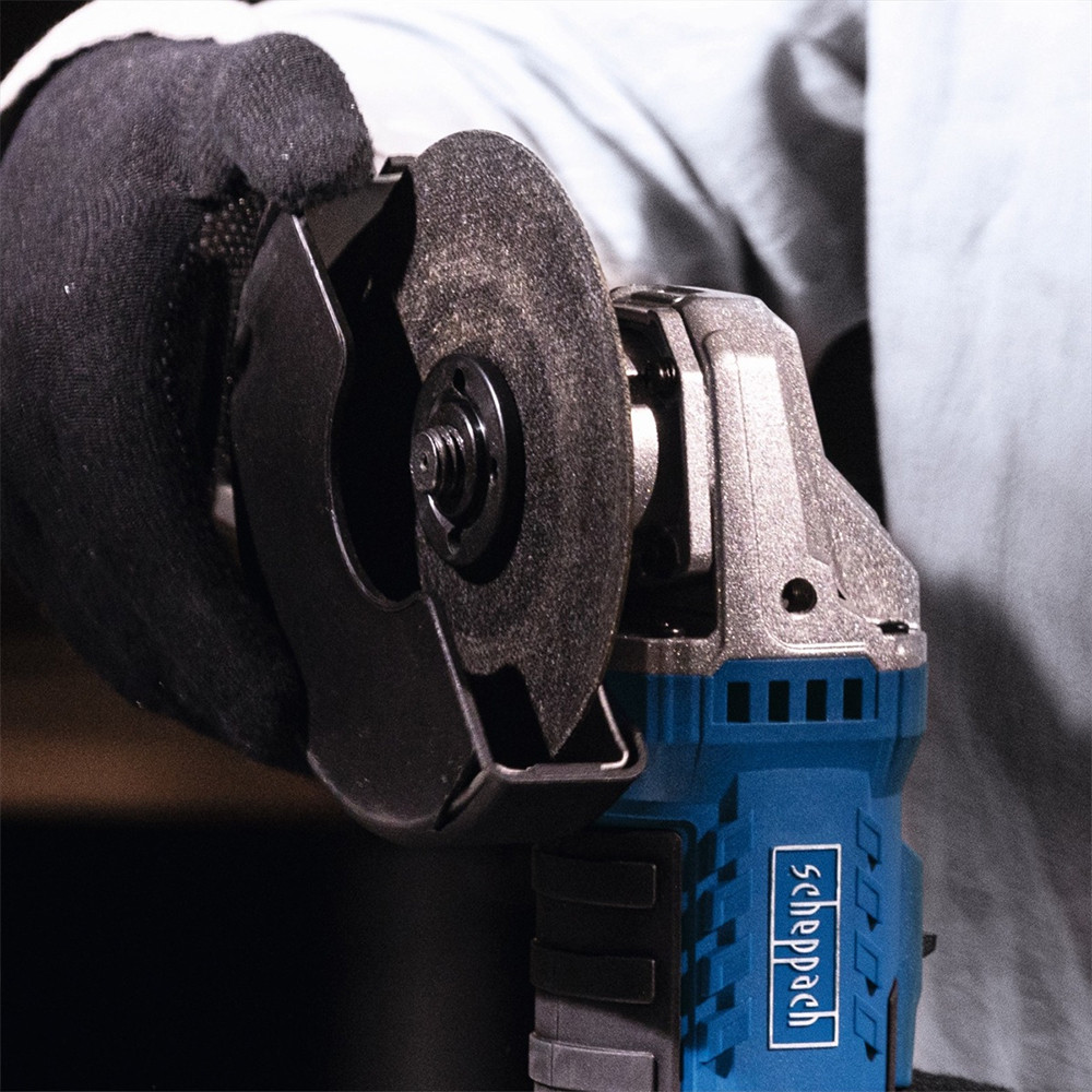 Az egyszerű tárcsacserét a praktikus tengelyzár biztosítja. A modell szabványos M14-es rögzítéssel rendelkezik, és 125 mm átmérőjű tárcsákkal használható. A csomagolás tartalmazza az akkumulátort és a töltőt.