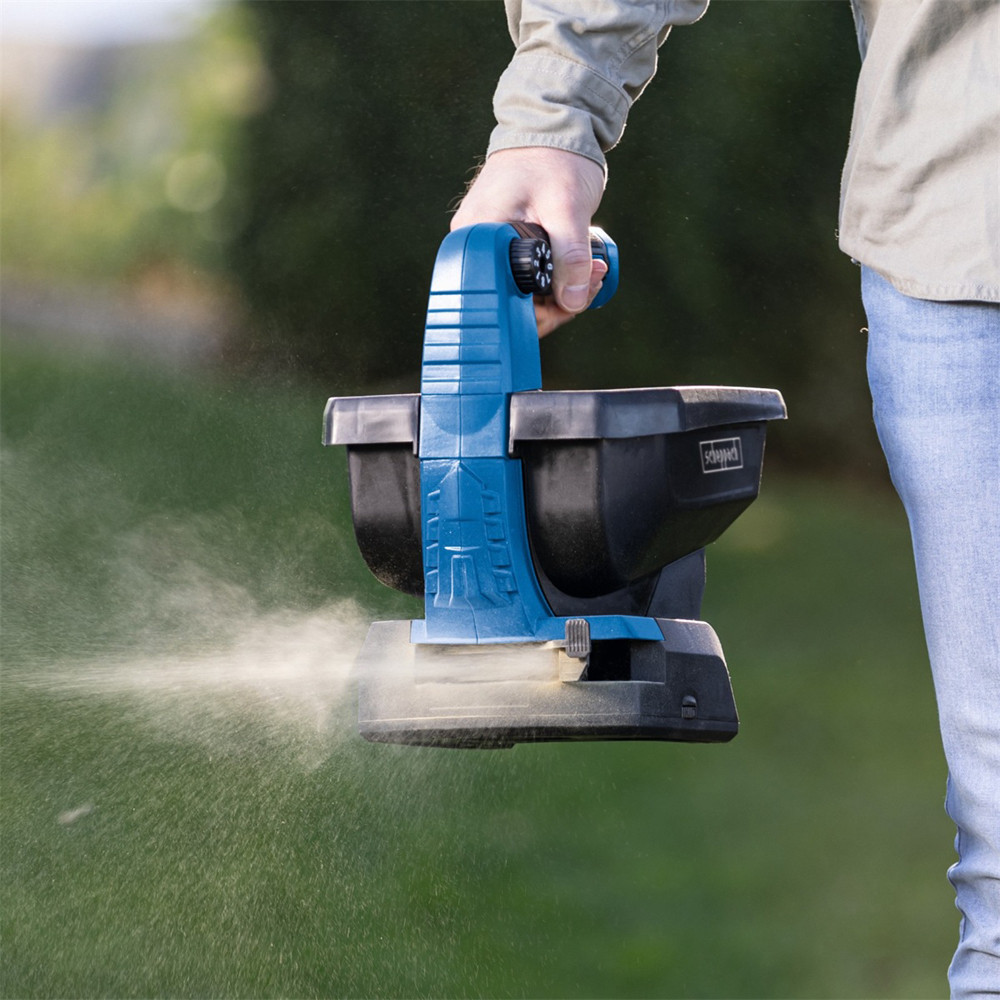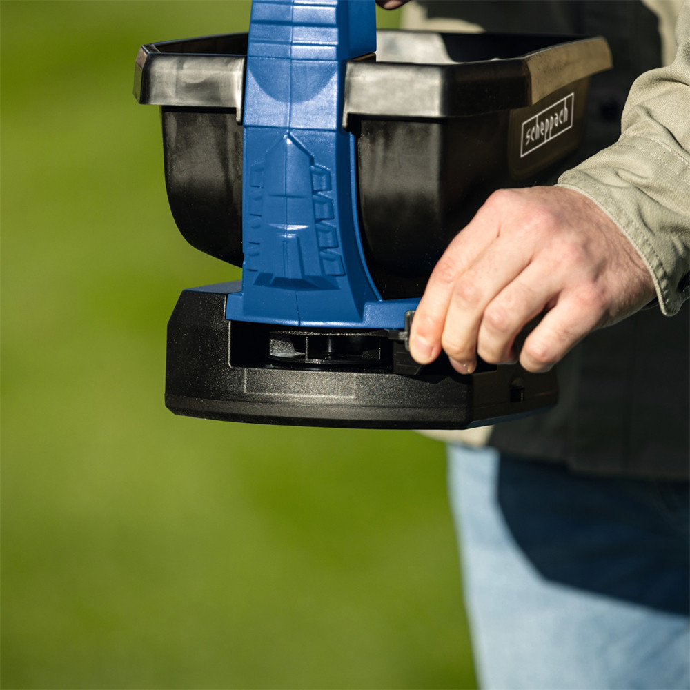 A vezeték nélküli működésnek köszönhetően a szóró használata nagyon kényelmes. A gép kompatibilis a Scheppach IXES 20V termékcsalád összes akkujával és töltőjével.
