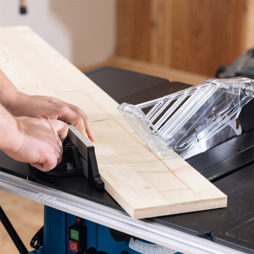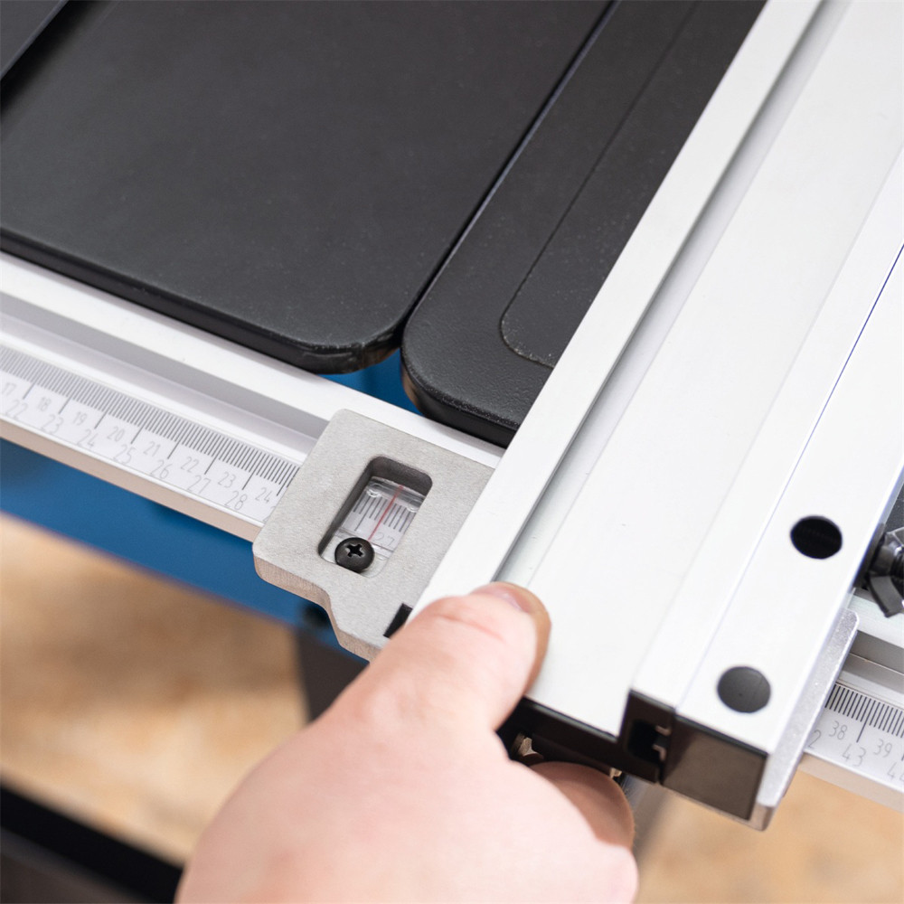 A gép standard felszereltsége a beépített mérőskála, a minőségi, nagyon stabil rögzítéssel rendelkező párhuzamvezető, a -60°/+60°-os szögbeállító, a biztonsági burkolat, az elszívó csatlakoztató csonk, tolórúd és egy második, 48-as fogazatú TCT fűrészlap a finomabb vágásokhoz. Nagyon hasznos továbbá, az asztal mindkét oldalra történő szélesítési lehetősége, aminek köszönhetően nagyobb munkadarabok is megmunkálhatók.