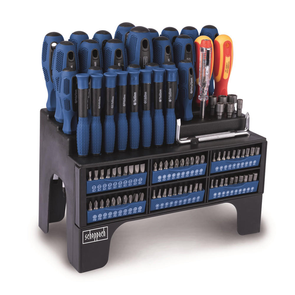 Minden szerszámnak pontosan meghatározott helye van, így mindig és gyorsan kéznél lesz. A készlet szigetelt csavarhúzókat és egy feszültségvizsgálót is tartalmaz az elektromos munkákhoz. Méreteinek köszönhetően az állvány nem foglal sok helyet. A kiváló minőségű Cr-V (króm-vanádium) ötvözet, a mágneses csúcsok, a kiváló minőségű műanyag a fogantyúkon és a gumírozott csúszásgátló zónák garantálják, hogy a szerszám hosszú évekig szolgálja Önt. Az állvány szükség esetén a falra is rögzíthető.