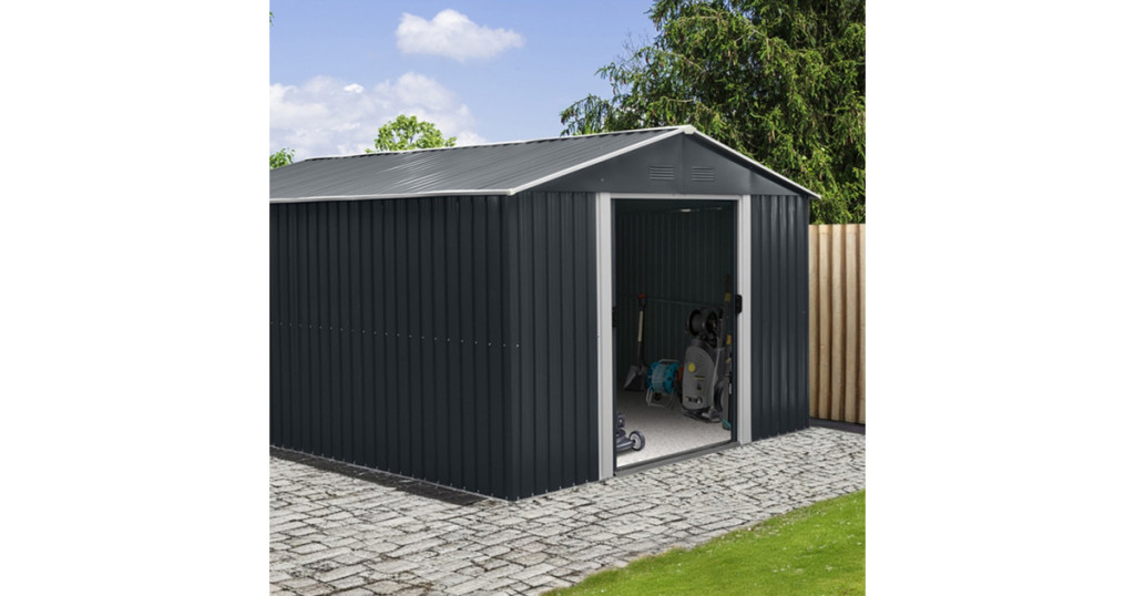 Fém kerti tároló 3 x 3,7 m nyeregtetővel (antracit) Riwall PRO RMSA 12x10 Anthracite